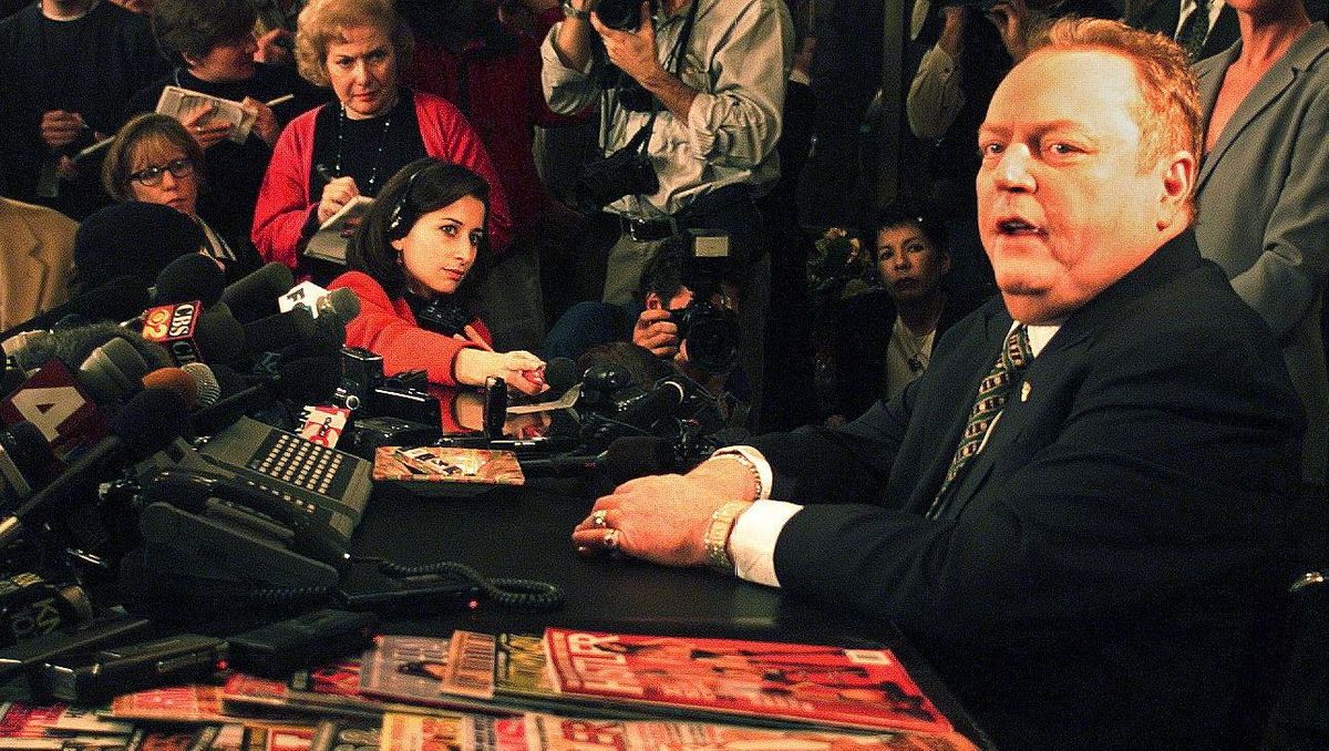 ในยุค 1970s กฏหมายสหรัฐให้อำนาจแต่ละท้องที่ตัดสินใจด้วยตัวเองว่าหนังสือปลุกใจเสือป่าเล่มไหนเป็น “ศิลปะ” หรือ “อนาจาร” ทำให้หนังสือโป๊หลายๆ หัวขายในวงจำกัดได้ไม่กี่รัฐ แต่ Larry ต้องการขาย “ทั่วประเทศ” นั่นทำให้เขาต้องขึ้นโรงขึ้นศาลข้อหา “ผลิตสื่ออนาจาร” นับครั้งไม่ถ้วน เพราะถูกฟ้องร้องโดยองค์กรณ์ต่อต้านสื่อลามกในรัฐต่างๆ